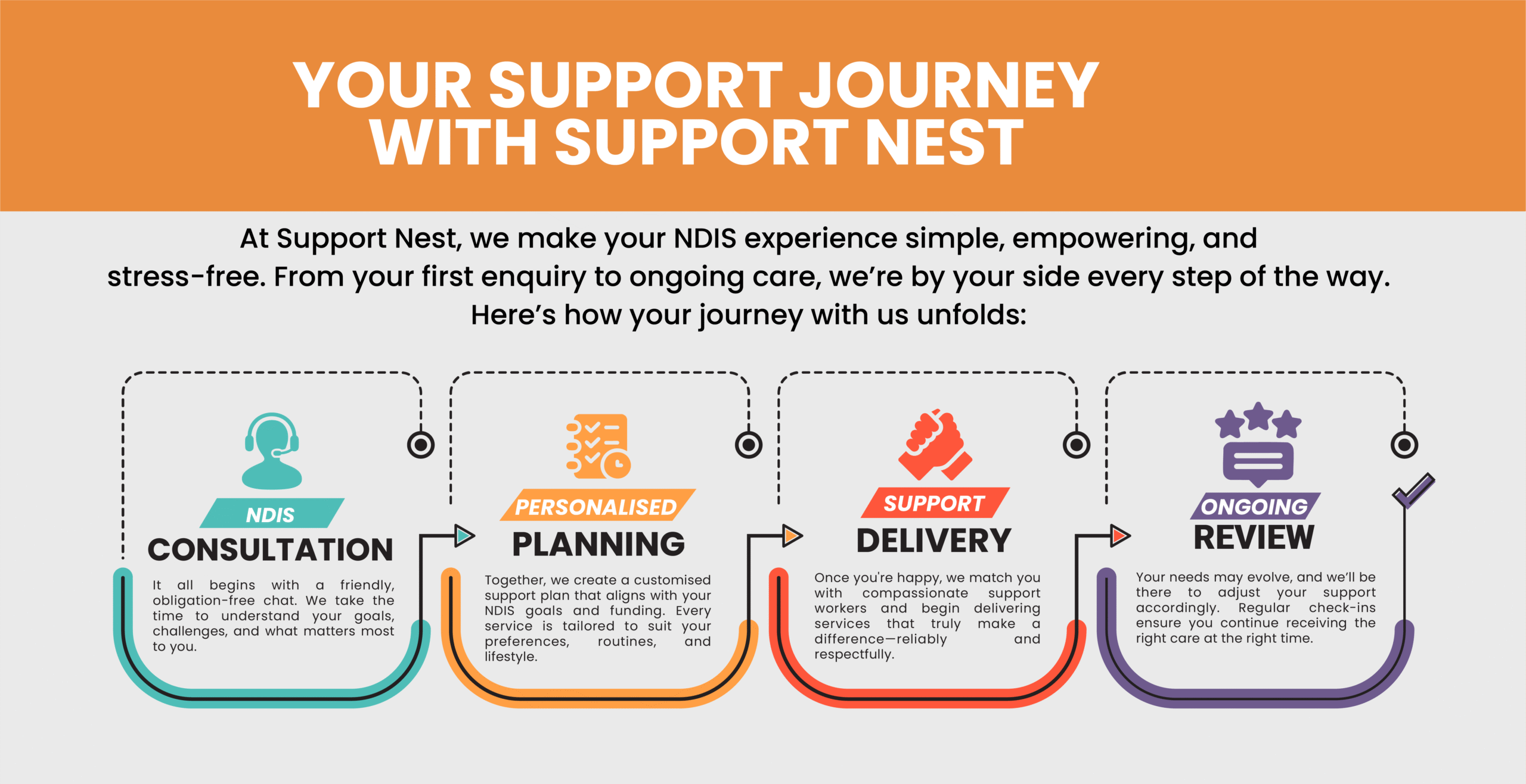 Support Nest offers a wide range of services designed to promote independence and well-being, ensuring a rewarding NDIS experience.